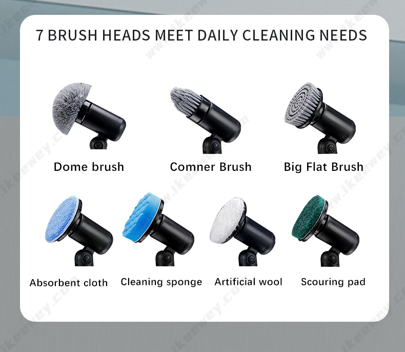 1. 7 interchangeable brush heads for different cleaning tasks: