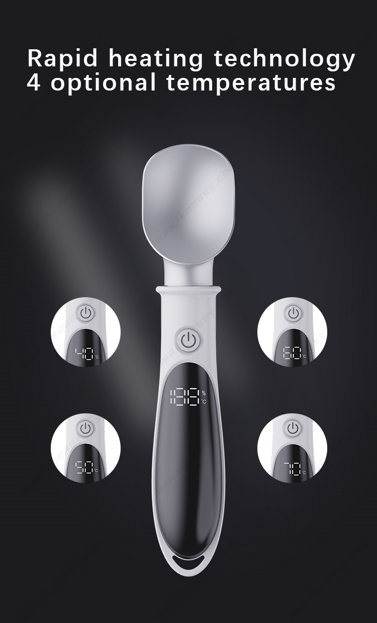 Enjoy four adjustable temperature (40℃,50℃,60℃,70℃) settings that heat up within one minutes! The scoop reaches up to 70°C, effortlessly scoop the hardest frozen treats.