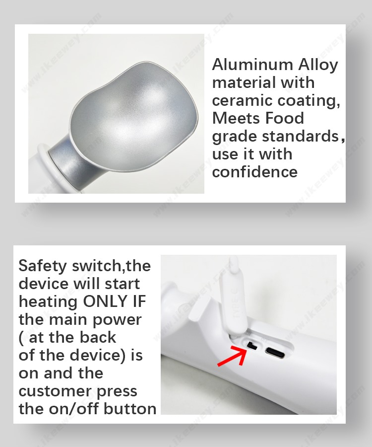 --- Auto Shut-Off: For added safety, the scoop automatically turns off after 10 minutes of inactivity, preventing overheating.